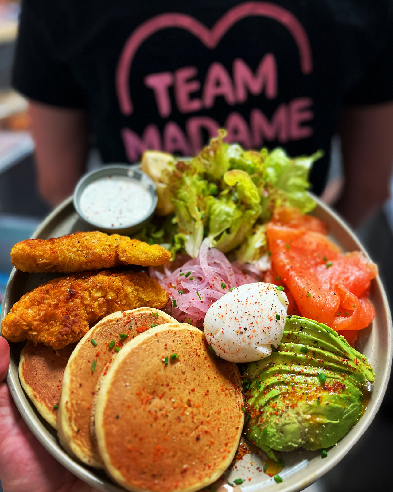 Pas besoin d’attendre dimanche pour se faire plaisir. MADAME café, crêperie, brunch vous offre un service avenant, un cadre agréable et beaucoup d’espace pour boire un café, bruncher ou vous plonger dans votre roman préféré. Faites comme chez vous ! Notre espace extérieur agréable est particulièrement accueillant quand il fait beau.